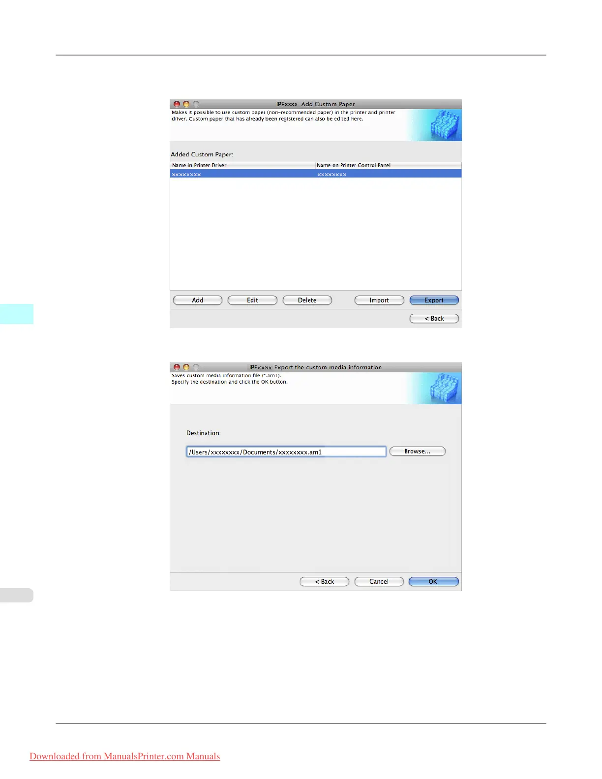 2. Select the paper you want to export to media information file from the Added Custom Paper list and then click the