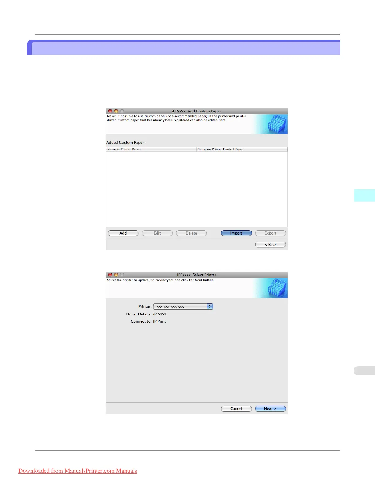 You can import a Custom Media Information File that has been saved in a folder, and add the file to the printer control