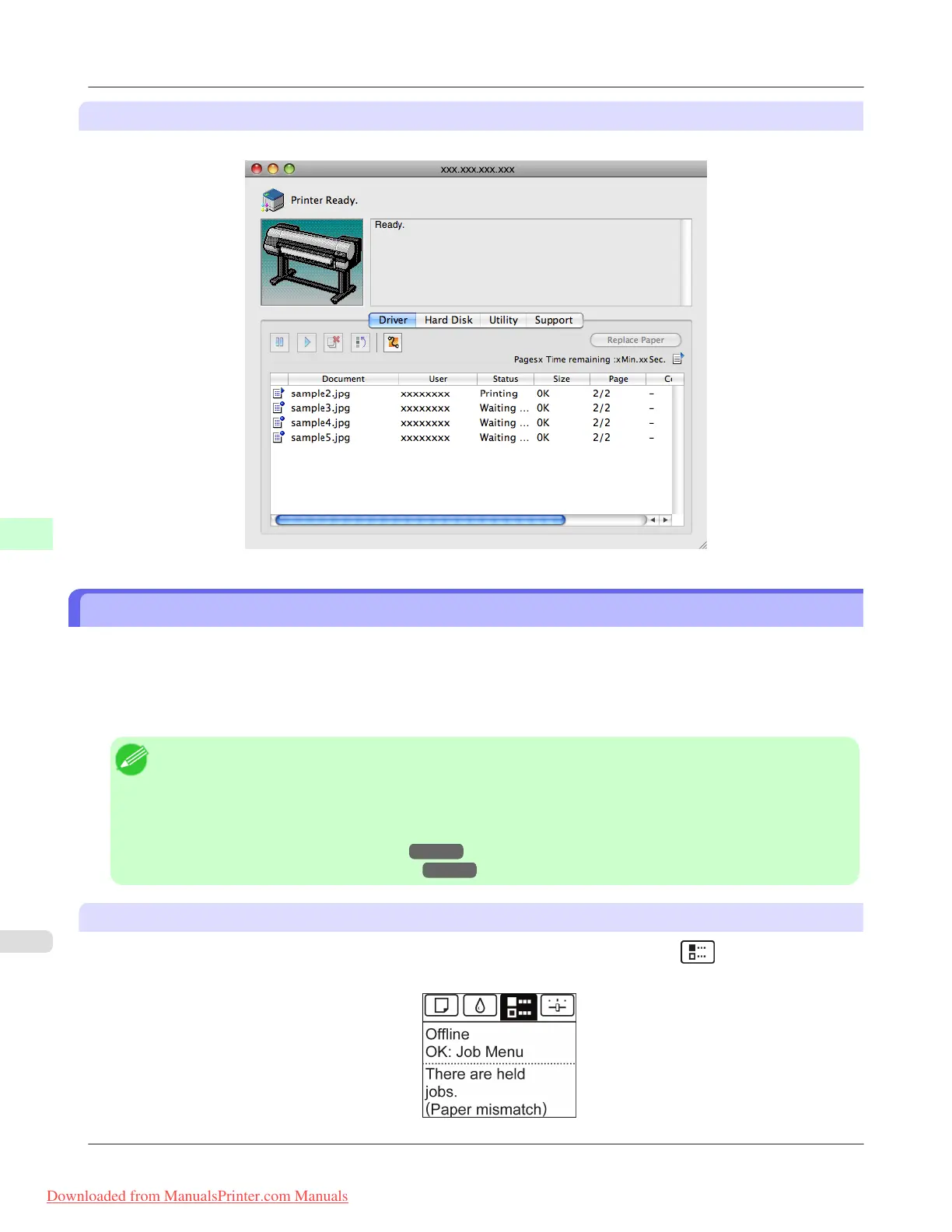 • As long as you do not manage held jobs from the Control Panel, imagePROGRAF Status Monitor, or image-