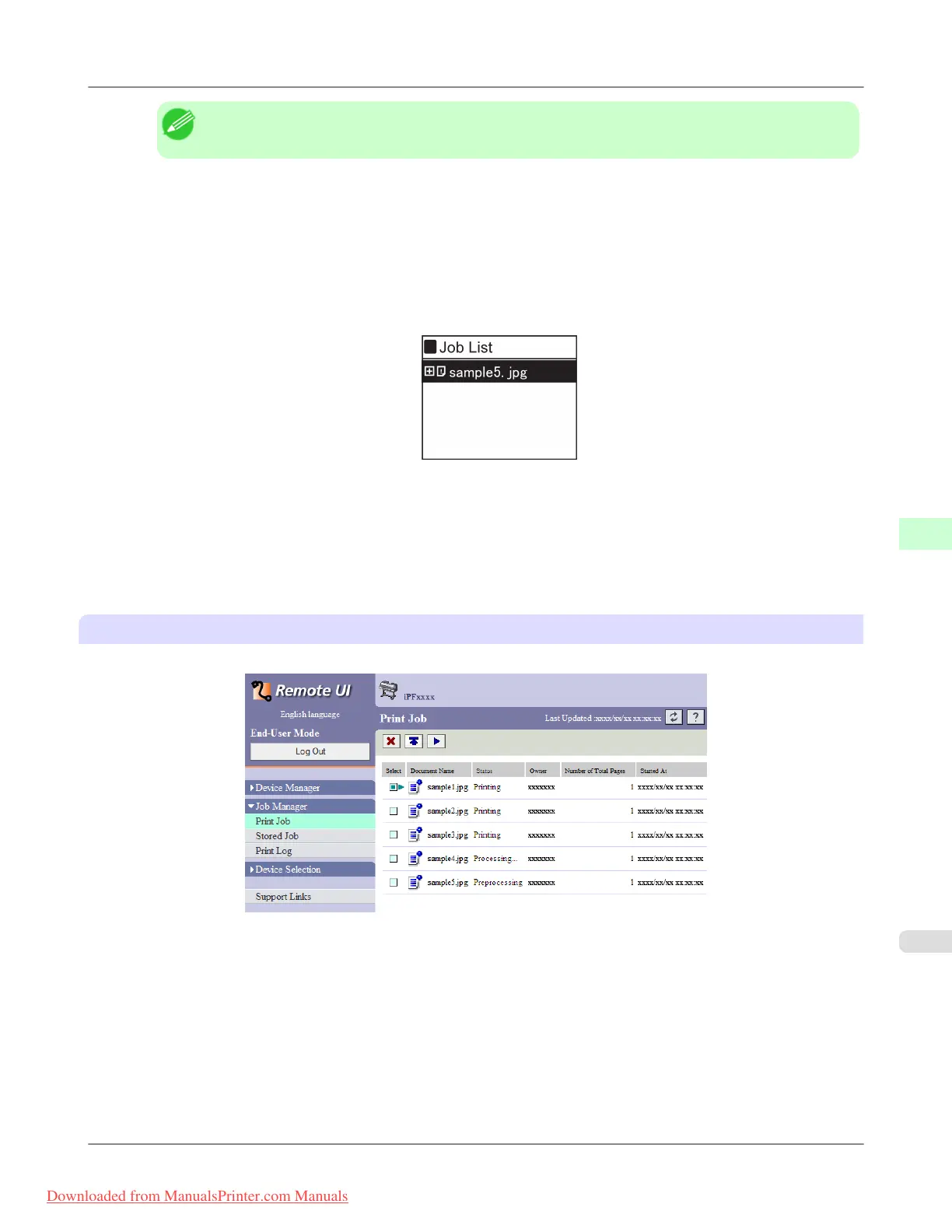 Manage jobs as needed on the Print Job page. For details, refer to the RemoteUI help file.