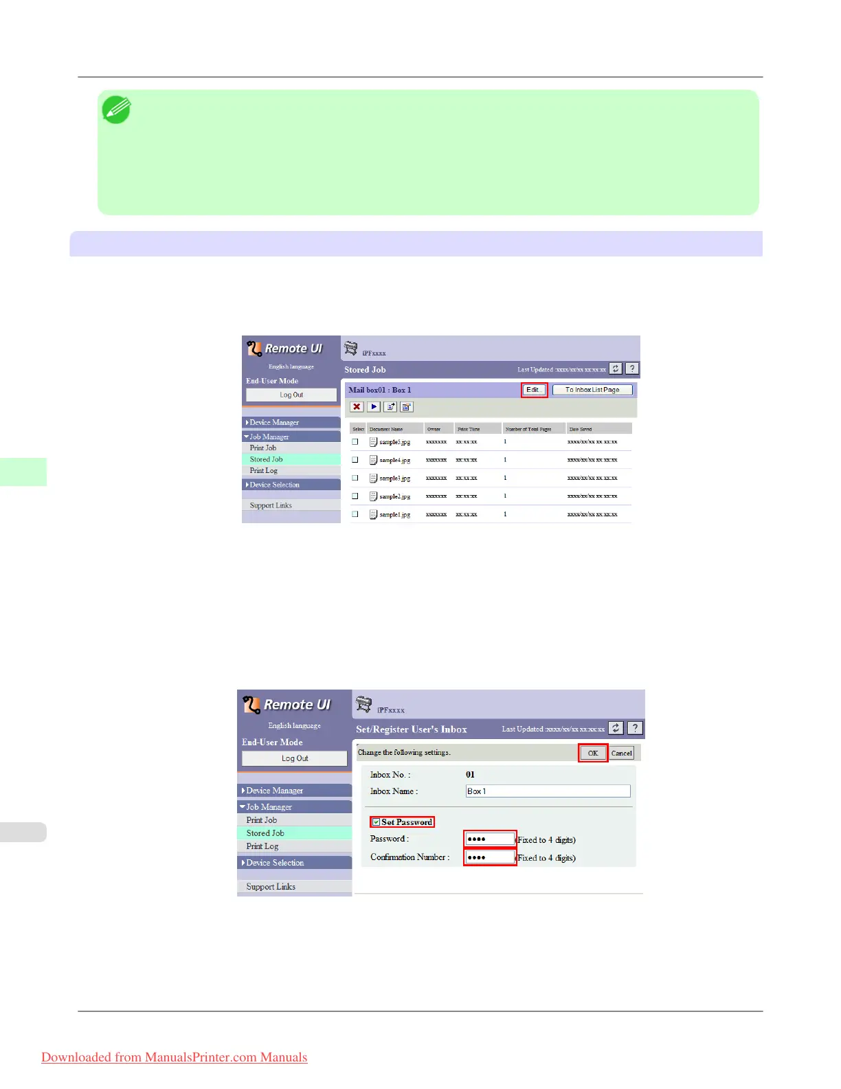 • Even if you have set passwords, they are not required to access personal boxes in Administrator Mode in