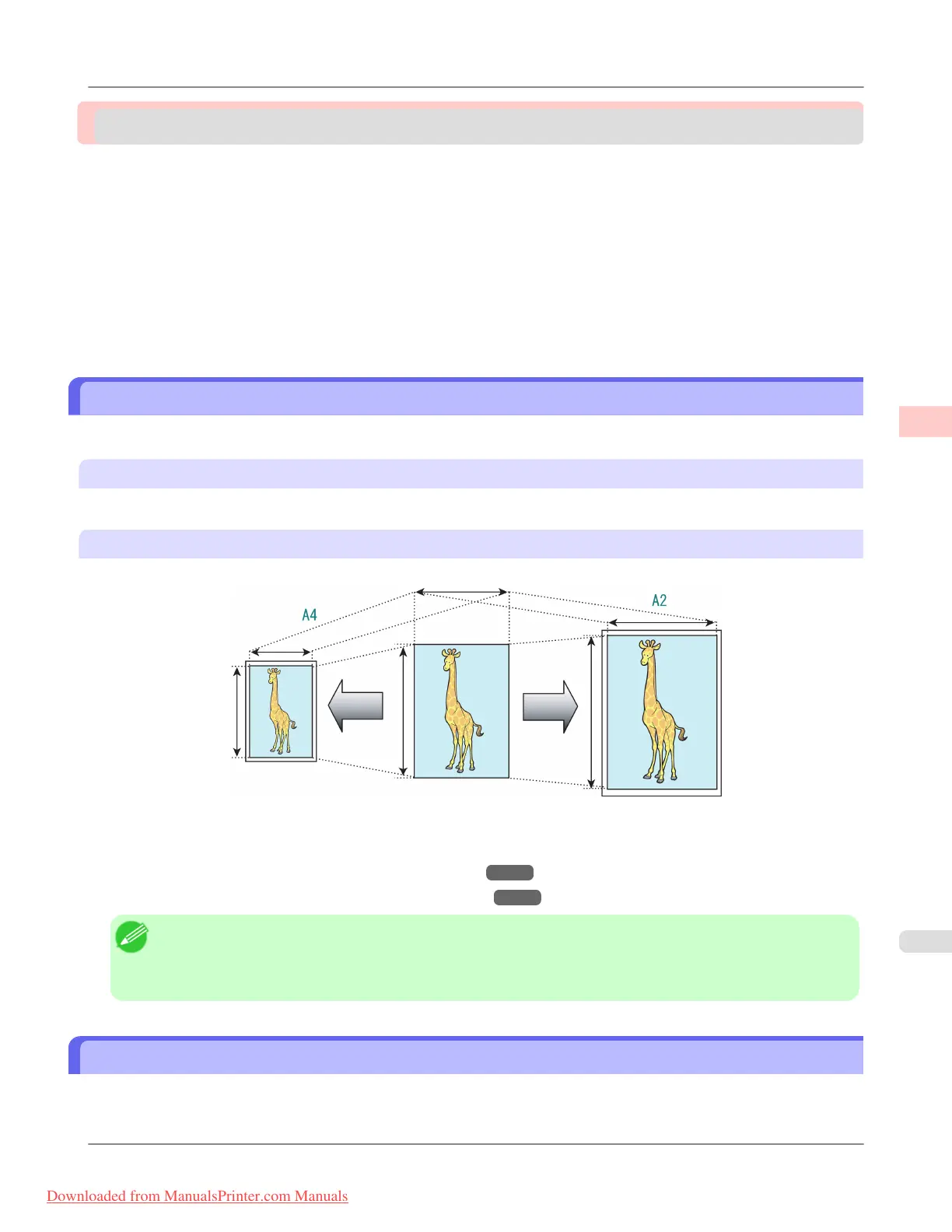 Printing enlargements or reductions