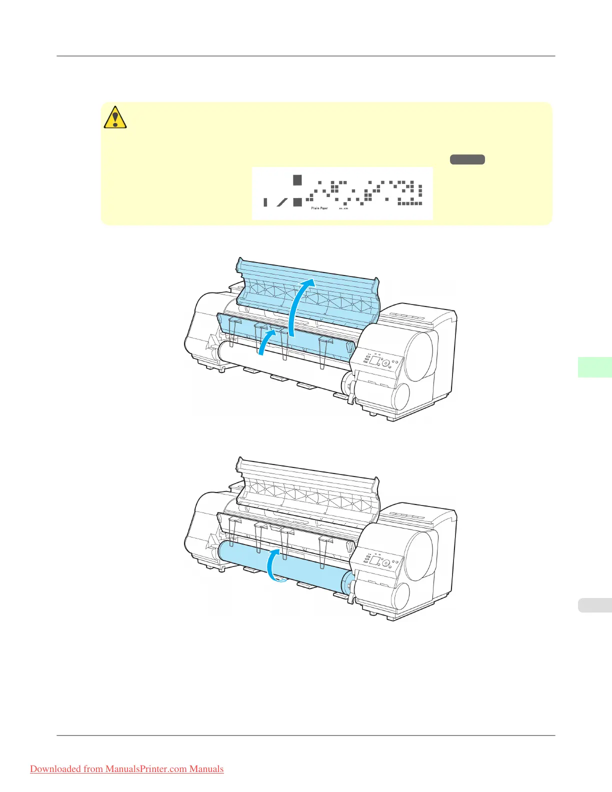 • If you have selected ManageRemainRoll > On in the Control Panel menu, a barcode is printed on