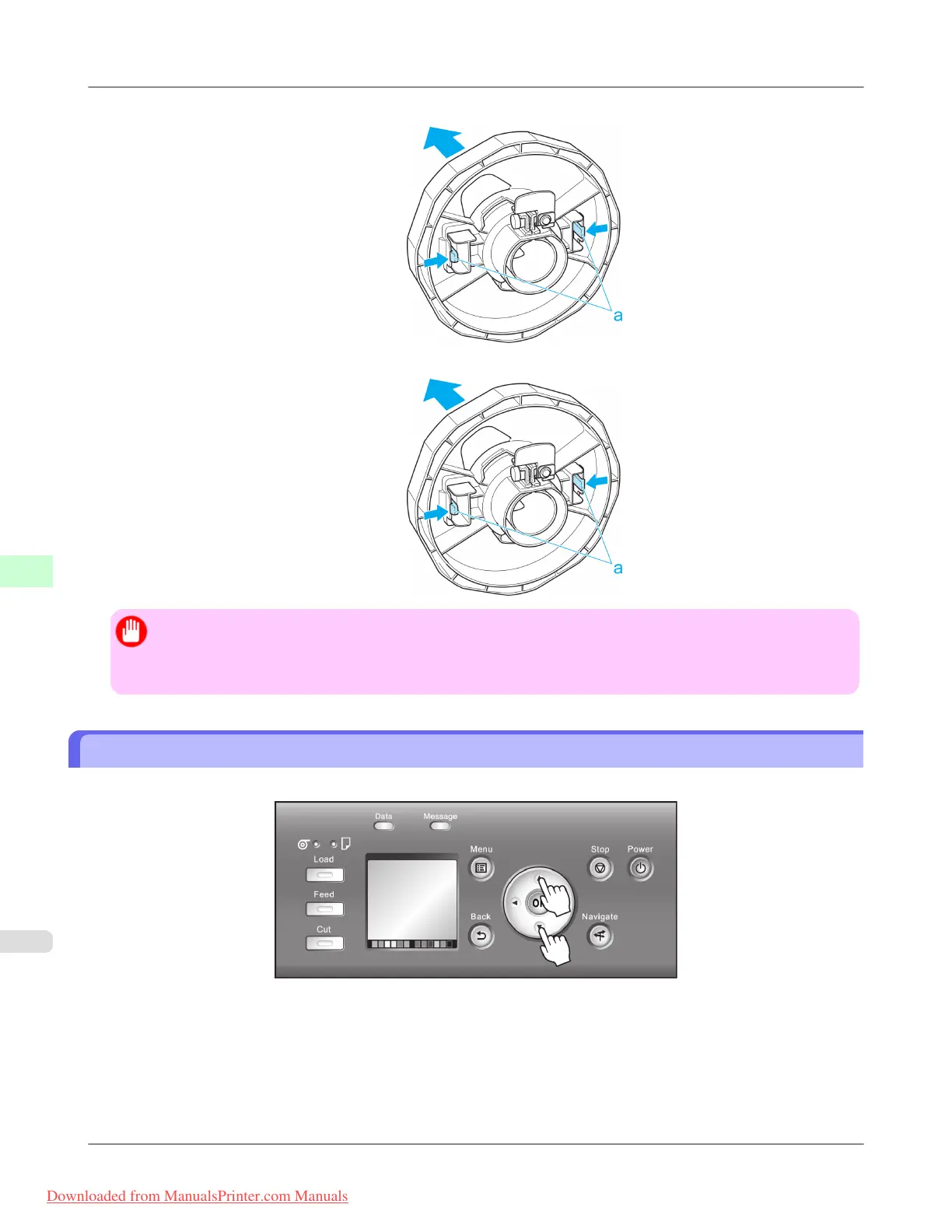 After a roll has been advanced, you can press the Feed button to feed or retract the roll with the ▲ and ▼ buttons.