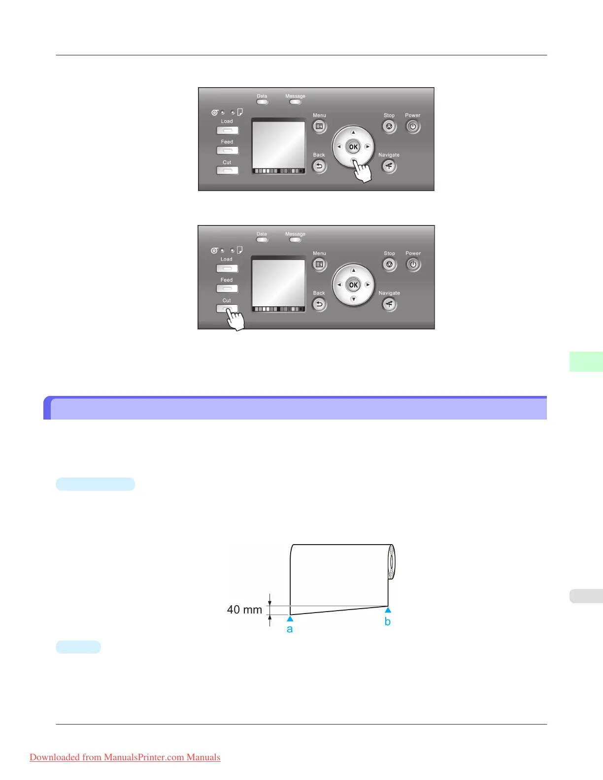 2. Press the ▼ button to advance the roll to the position for cutting.
