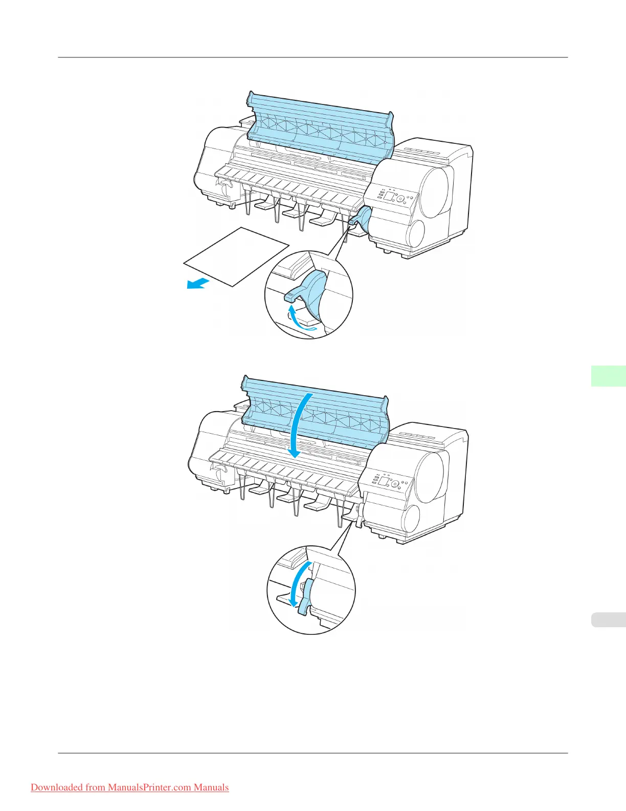5. Open the Top Cover, lift the Release Lever, and remove the sheet.