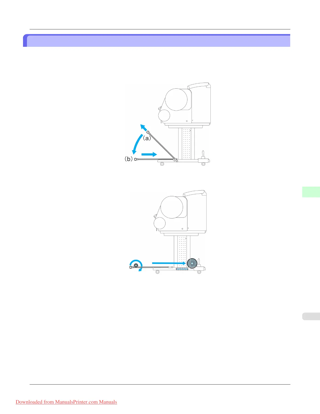 Stow the Output Stacker if you will use the Media Take-up Unit or if you will not use the Output Stacker for an extended