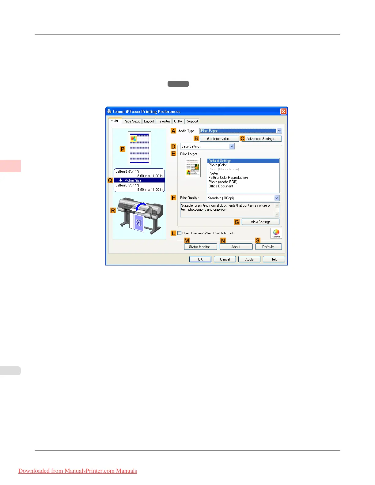 2. Select the printer in the dialog box, and then display the printer driver dialog box.(See "Accessing the Printer Driv-