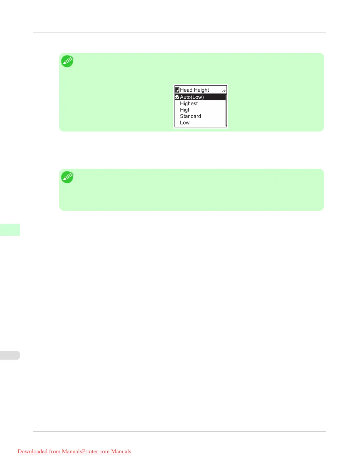 • When Head Height is set to Automatic, the setting value selected for the previous print job is dis-