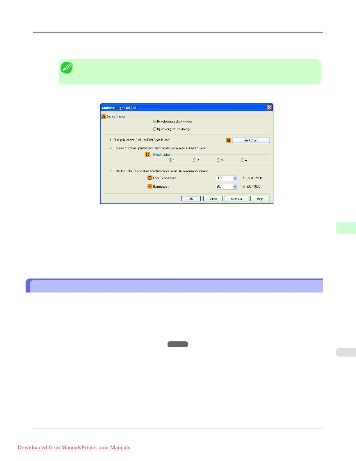 17. In the Ambient Light Adjust dialog box, select the number of your preferred chart in C Chart Number.