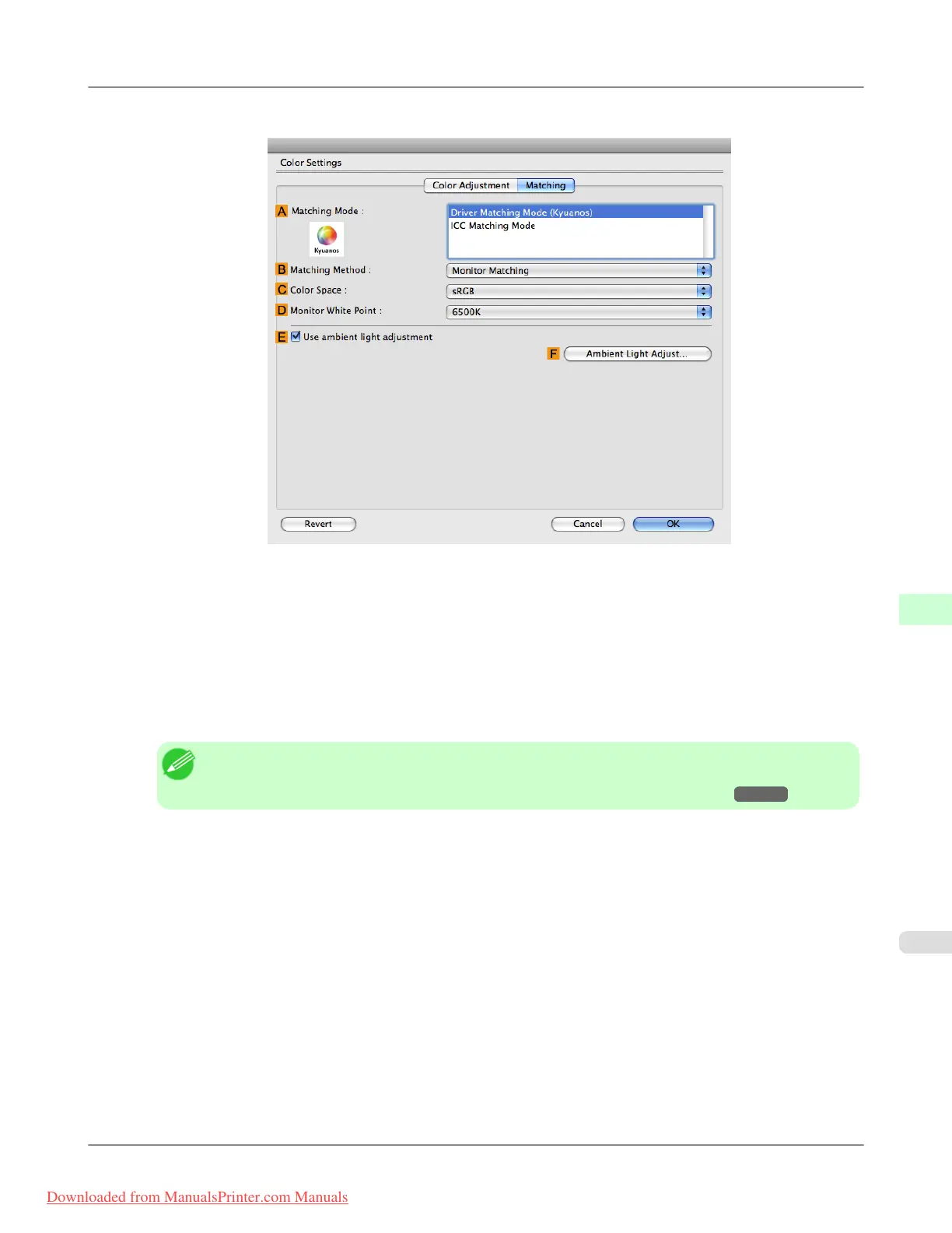 • For greater precision in monitor matching, we recommend configuring the settings for ambient light
