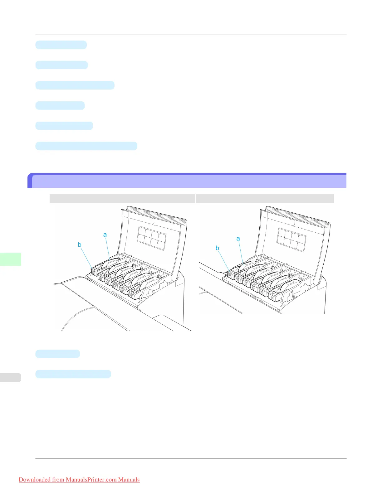 A lever that locks the Ink Tank in place and protects it. Lift and lower the lever when replacing an Ink Tank. To open