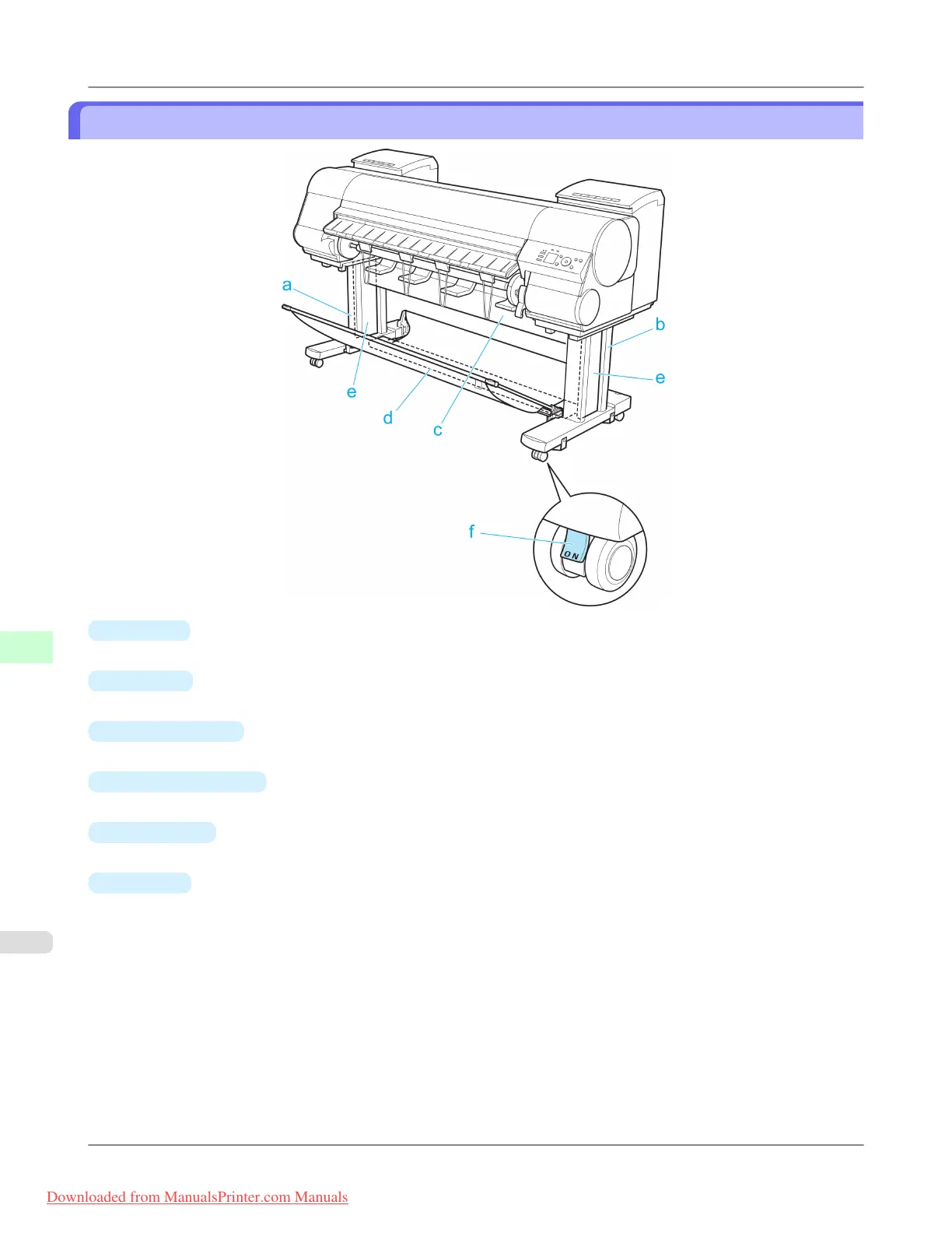 Supports Stand L and Stand R. Attach the optional Media Take-up Unit to this part.