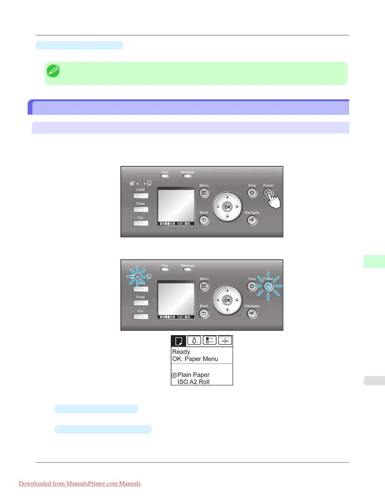 2. The Power Lamp is lit when the printer finishes starting up, and the printer is now in Standby.