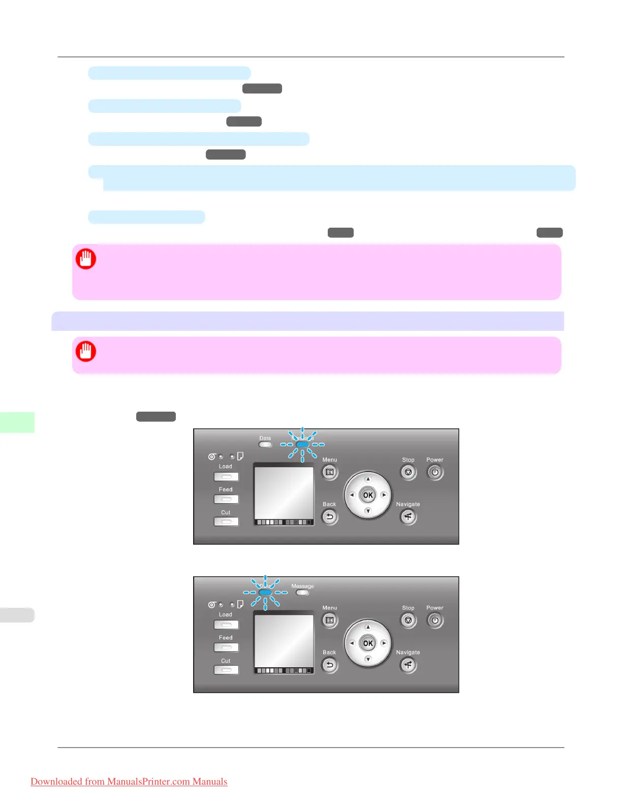 If the Data Lamp is flashing, the printer is receiving a print job. Turn off the printer only after printing is finished.