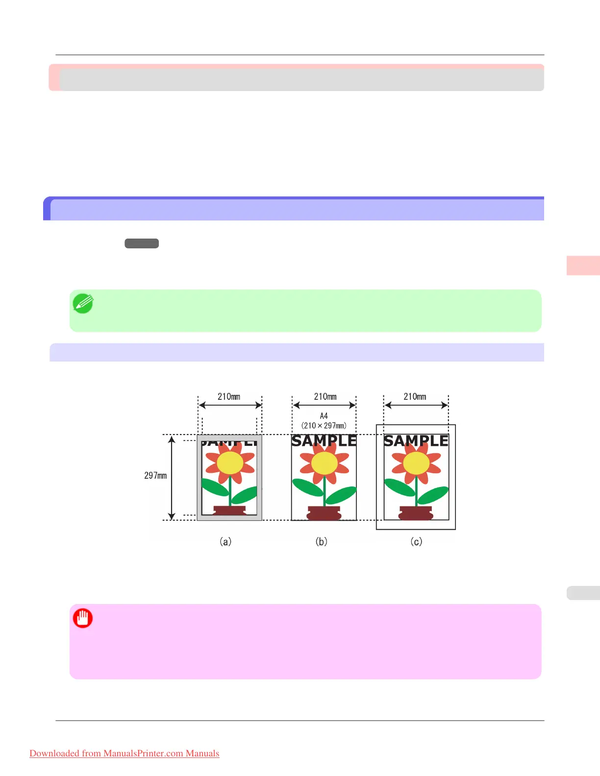 • (c) Oversized paper size: Print area matches the page size (b)