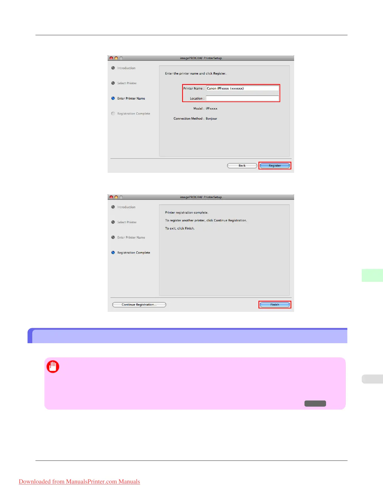Follow the steps below to configure the destination if you are using the printer in a network that uses the Bonjour function.