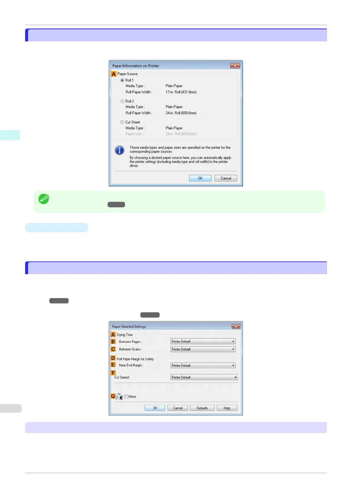 On the Paper Information on Printer dialog box, you can obtain information on the paper in the printer and config-