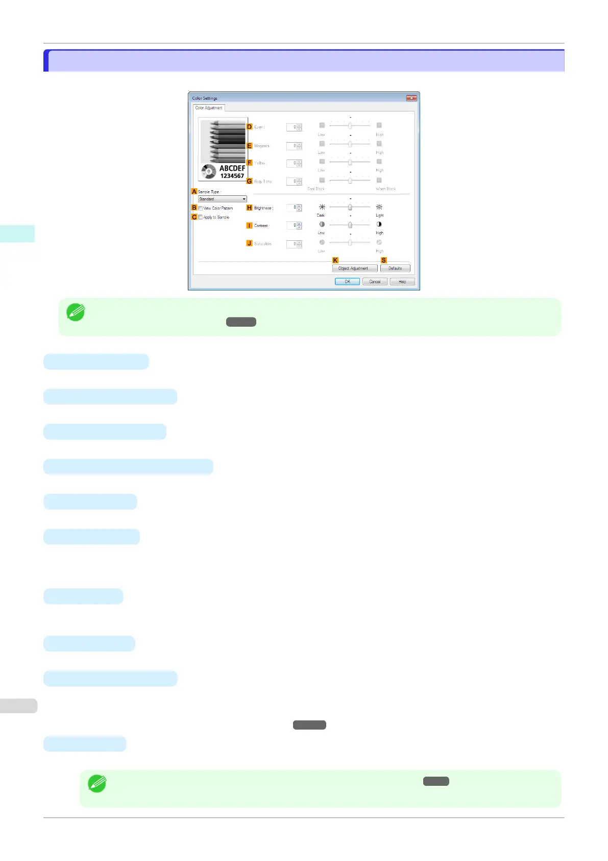To display the Color Adjustment sheet, on the Main sheet, click Color Settings by Color Mode in Advanced