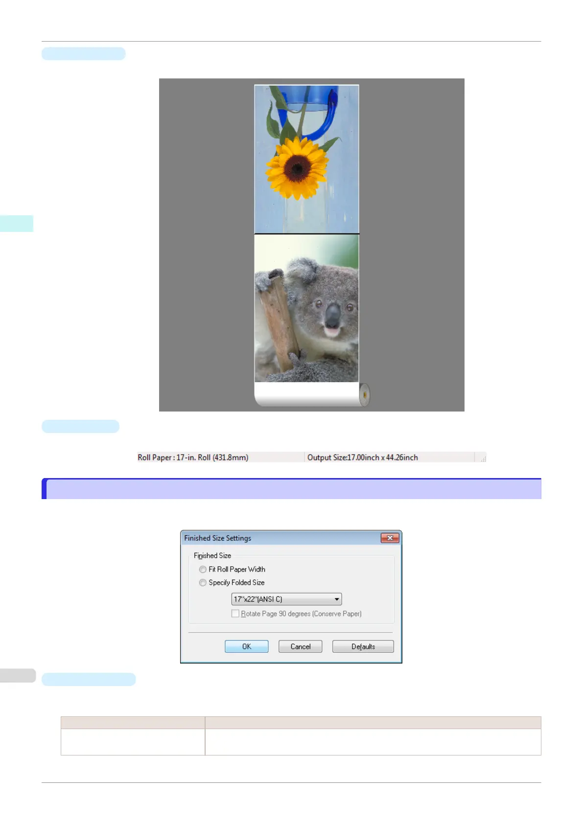 Fit Roll Paper Width Prints by automatically enlarging or reducing the entire document so that the width of the