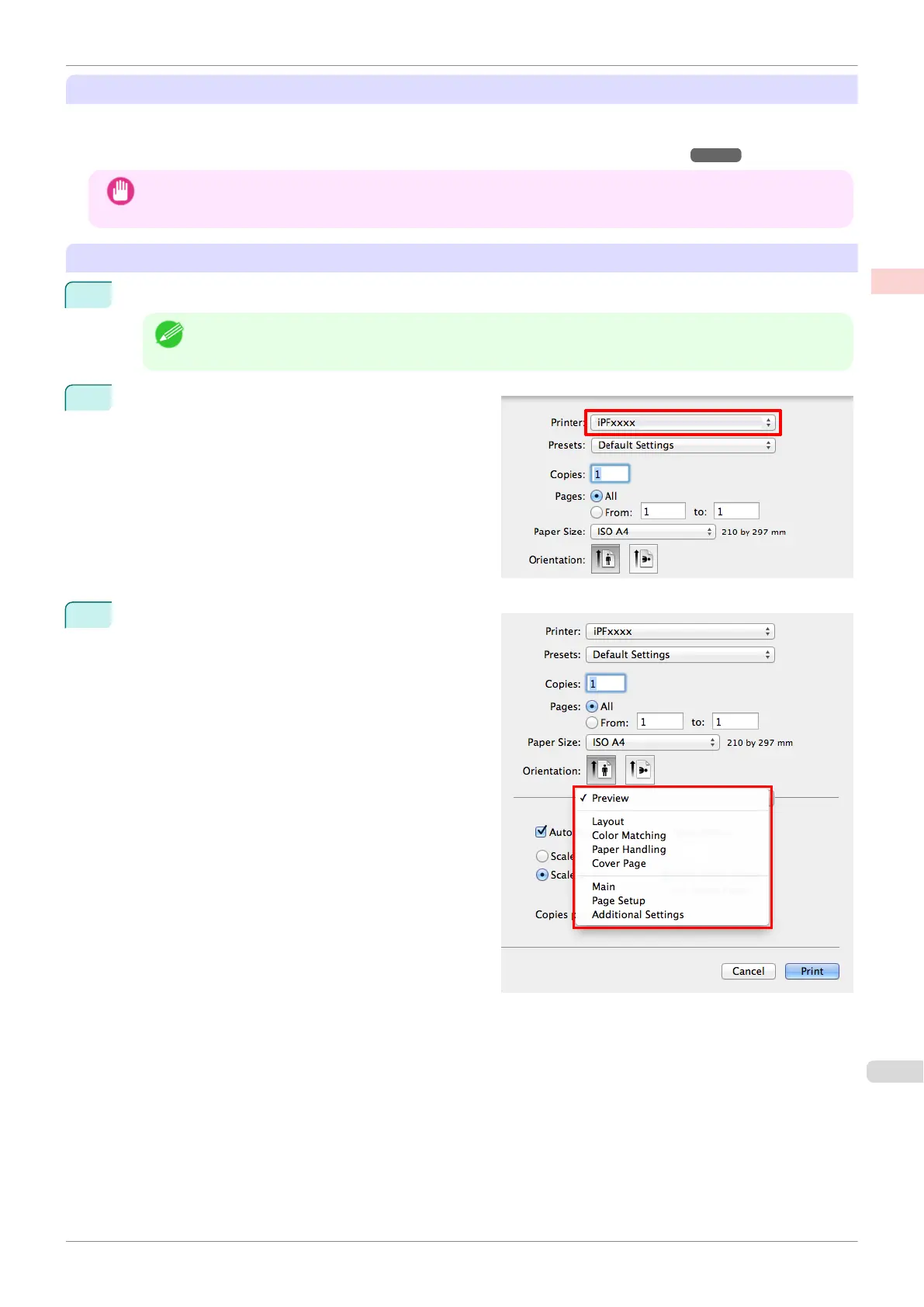 In the application software, select Print from the File menu to display the dialog box for printing conditions.