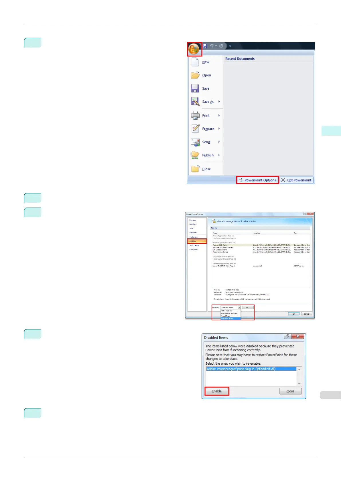 If Addin imageprograf print plug-in (ipfaddinif.dll) is dis-