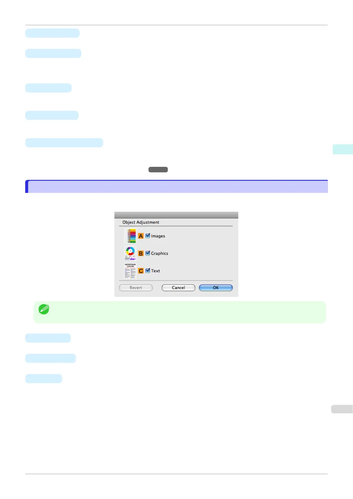In the Object Adjustment dialog box, you can specify what type of print jobs to apply color adjustment to. If an