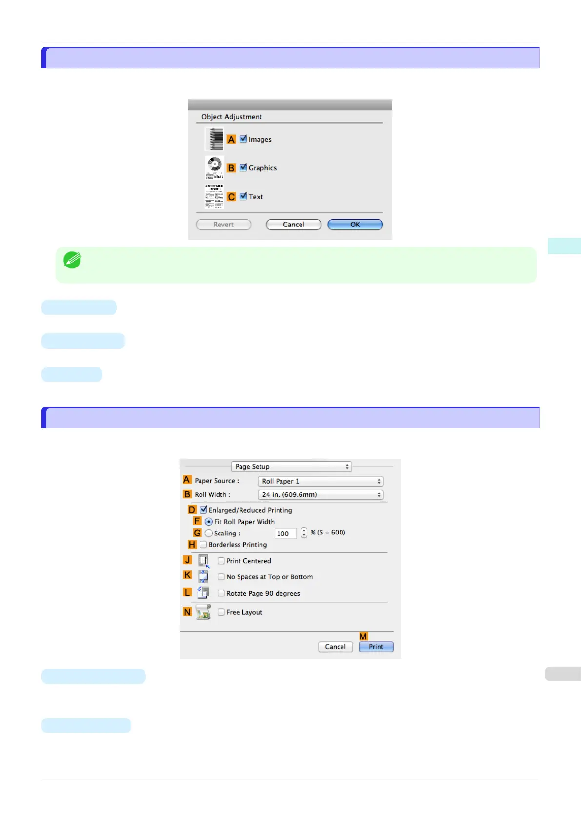 In the Object Adjustment dialog box, you can specify what type of print jobs to apply color adjustment to. If an