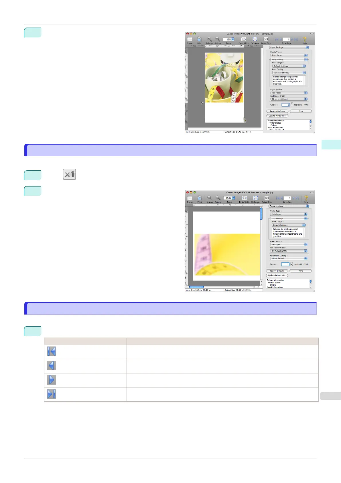 Canon iPF840 - Display with Actual Size; Moving a Page