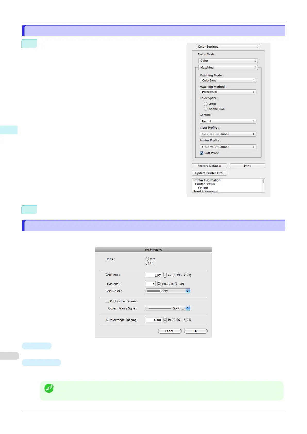 This dialog box appears when you select Preferences from the imagePROGRAF Advanced Preview menu. You