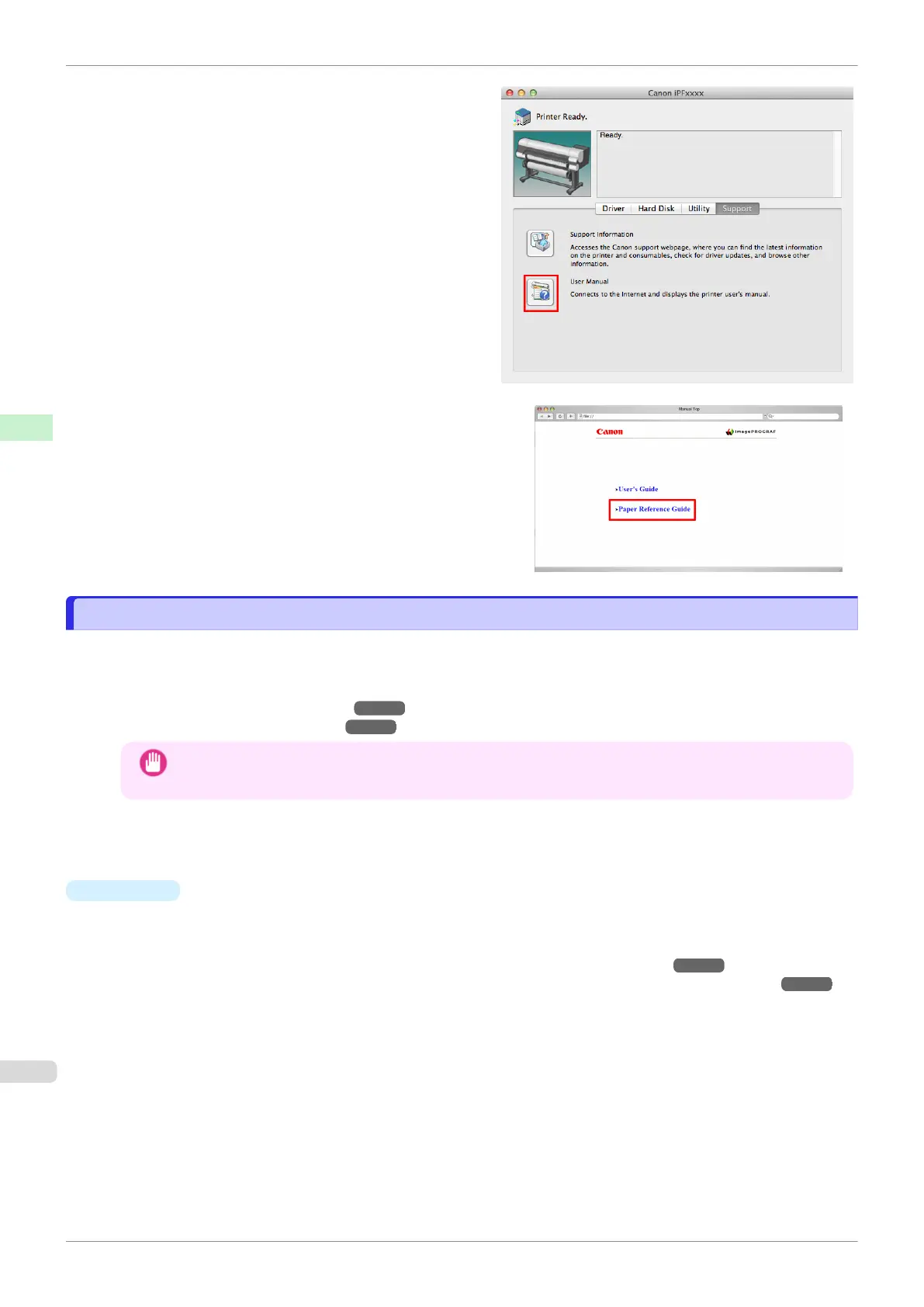 The basic instructions for accessing the Canon website from the printer driver are as follows.