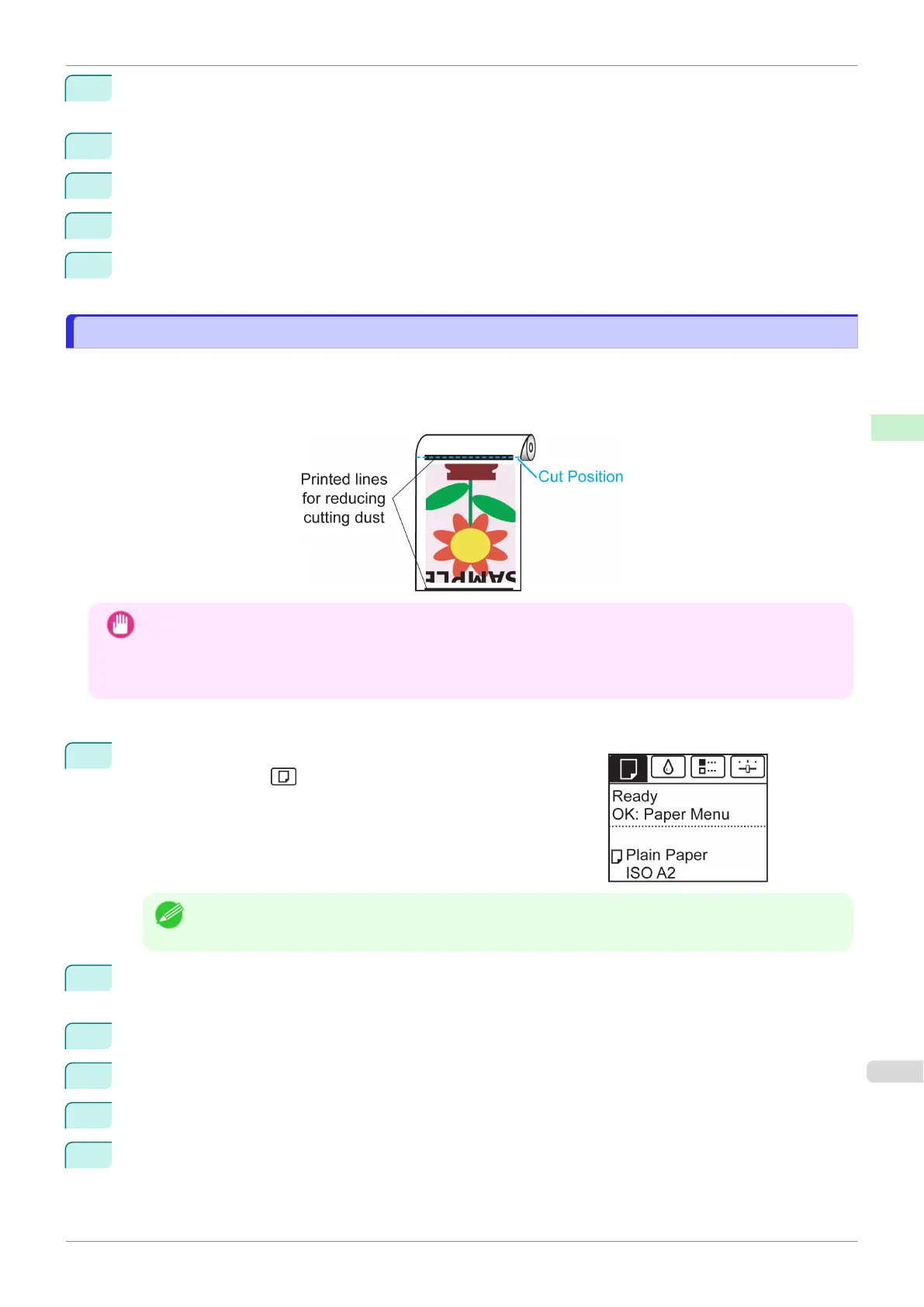 and trailing edges of documents. It may help prevent Printhead damage. You can specify for CutDustReduct. to be