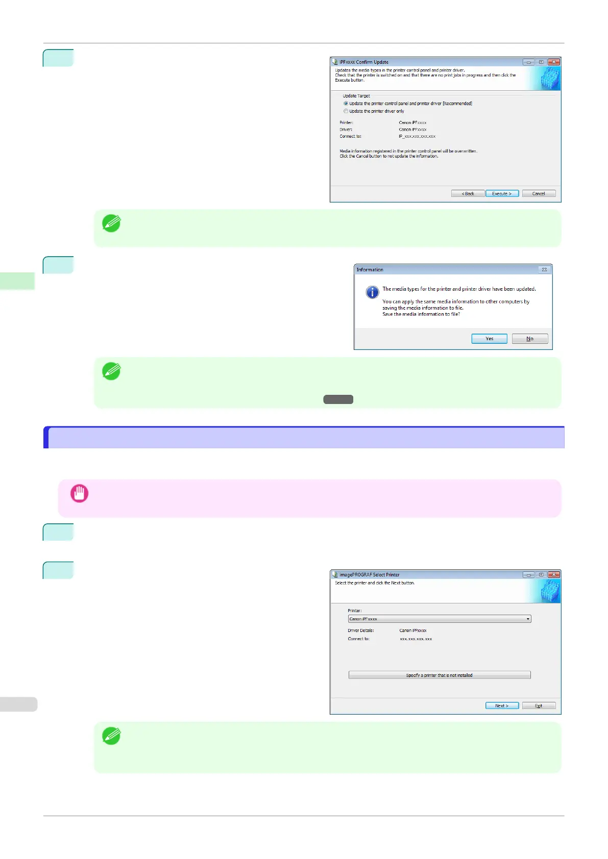 In the following screens, you cannot change the printer where media type information is to be updated.