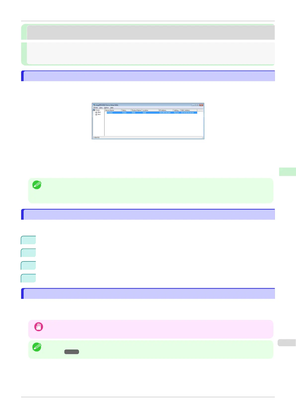We recommend that your network or printer administrator complete the setup work using imagePROGRAF Device