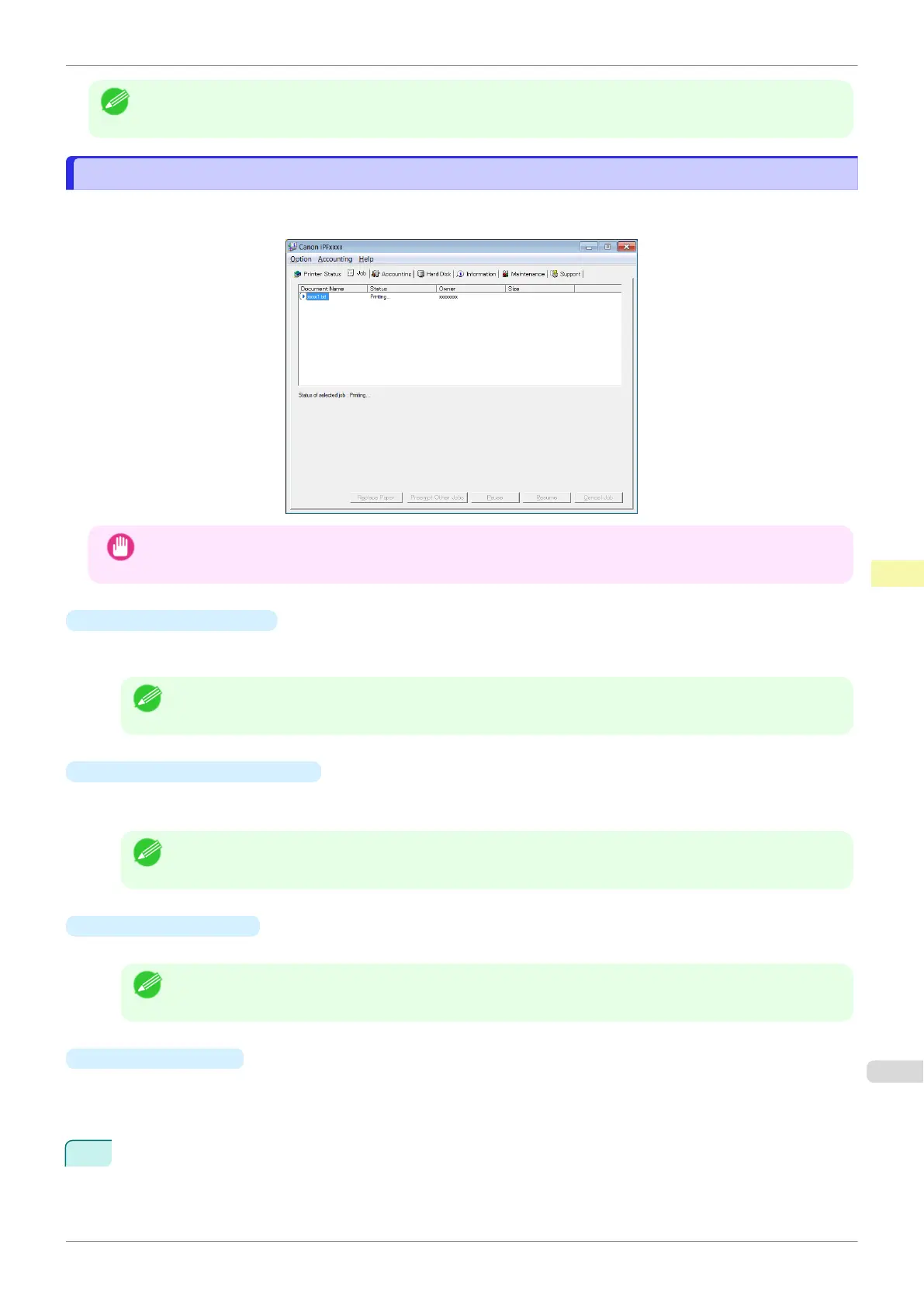 You can use the Job sheet in imagePROGRAF Status Monitor for operations such as pausing and canceling print