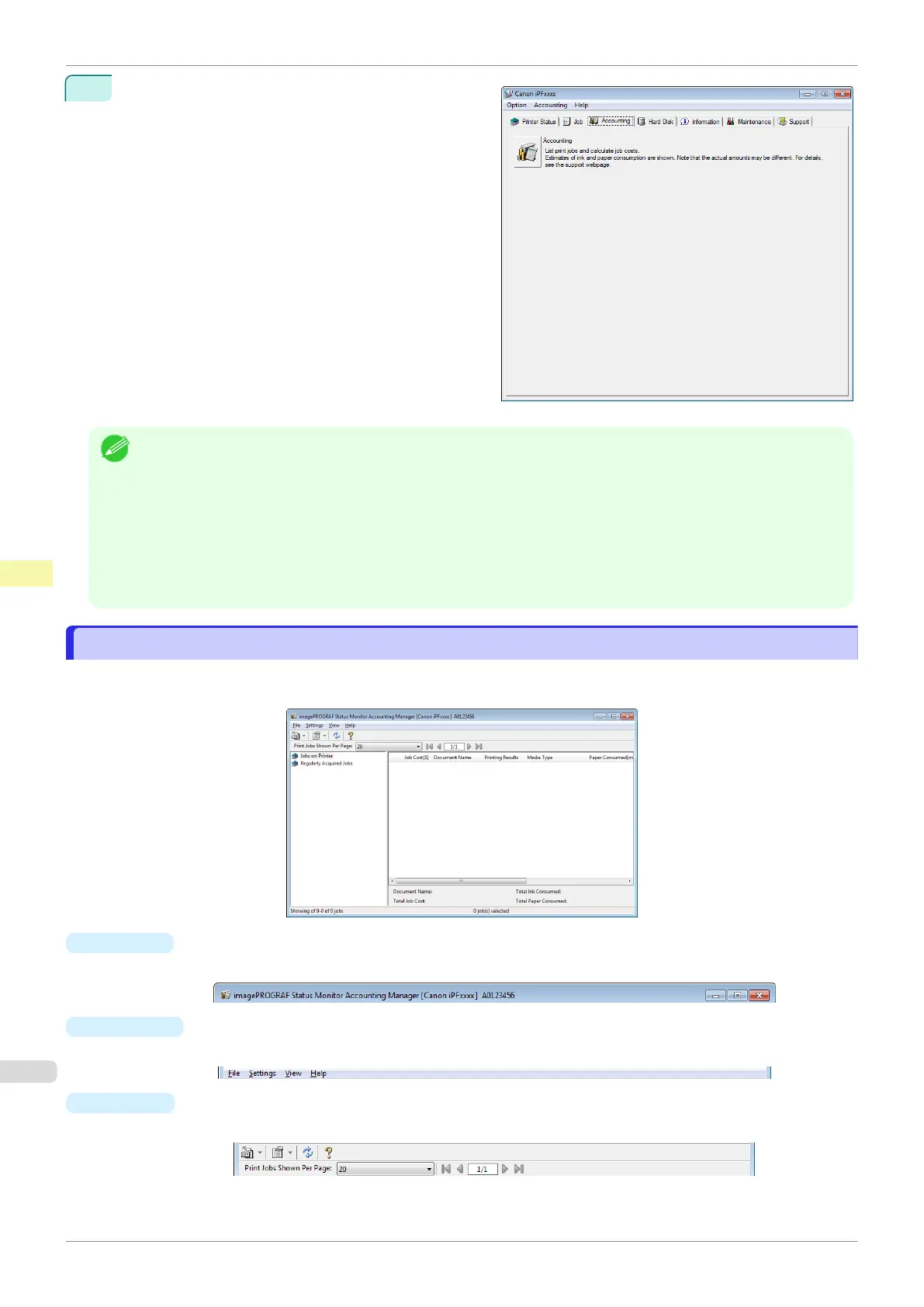 The Accounting Manager main window consists of a title bar, menu bar, toolbars, listed job selection area, job list