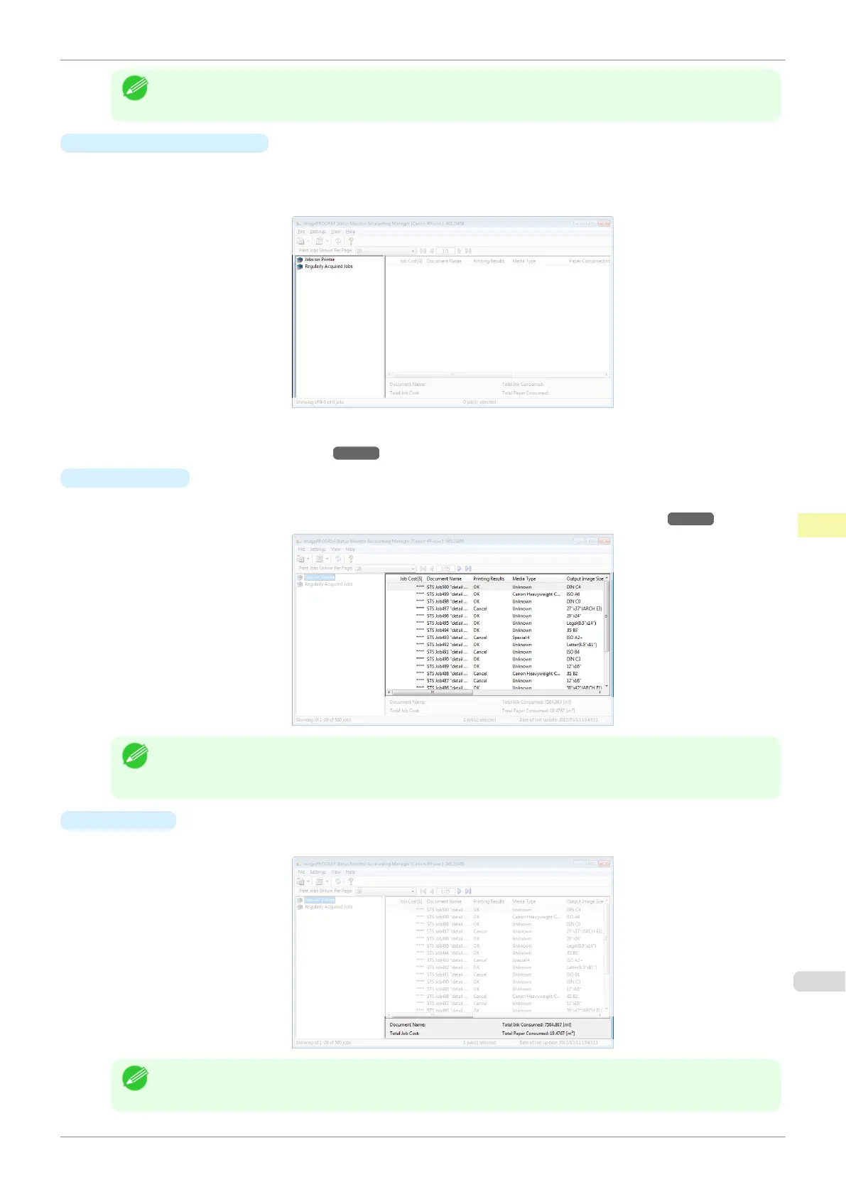 Displays a list of the jobs in the printers or periodically acquired jobs. (See "Job List Area.") ➔P.504