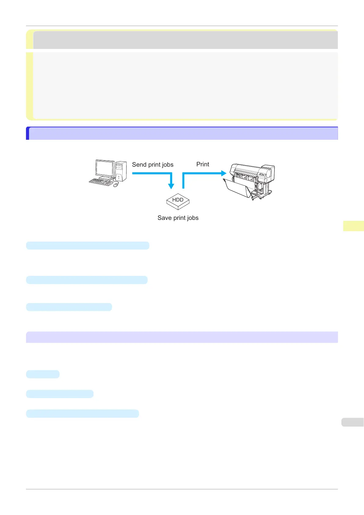 printer without printing it yet. Saved print jobs can be printed in the required quantity later without the need to