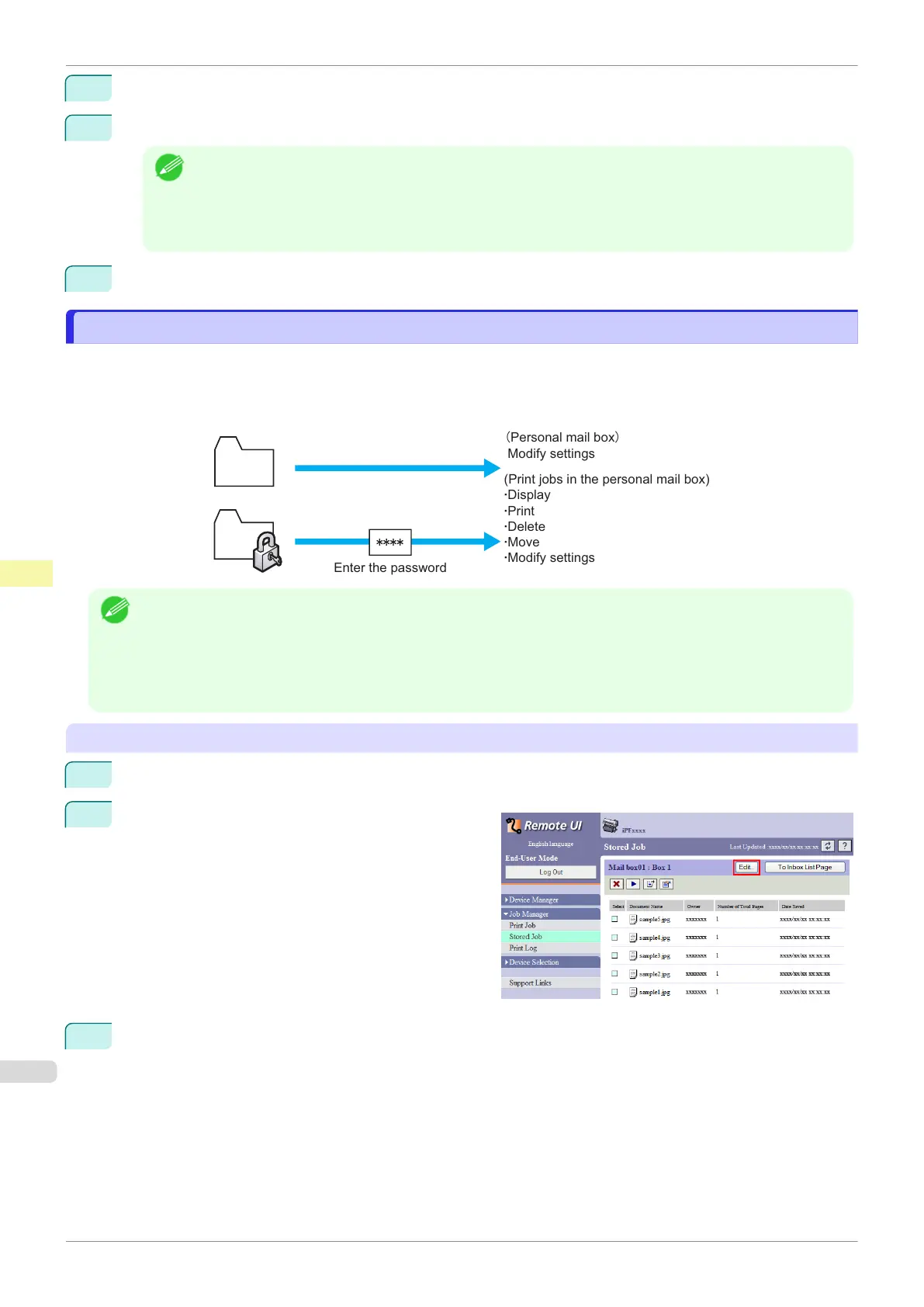 modify the personal box settings, as well as to display, print, delete, move, and modify jobs saved in the personal
