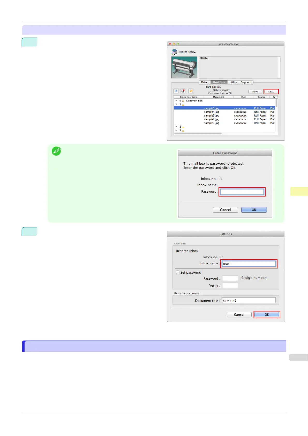 Print jobs stored on the printer's hard disk (saved jobs) can be listed by box as follows.