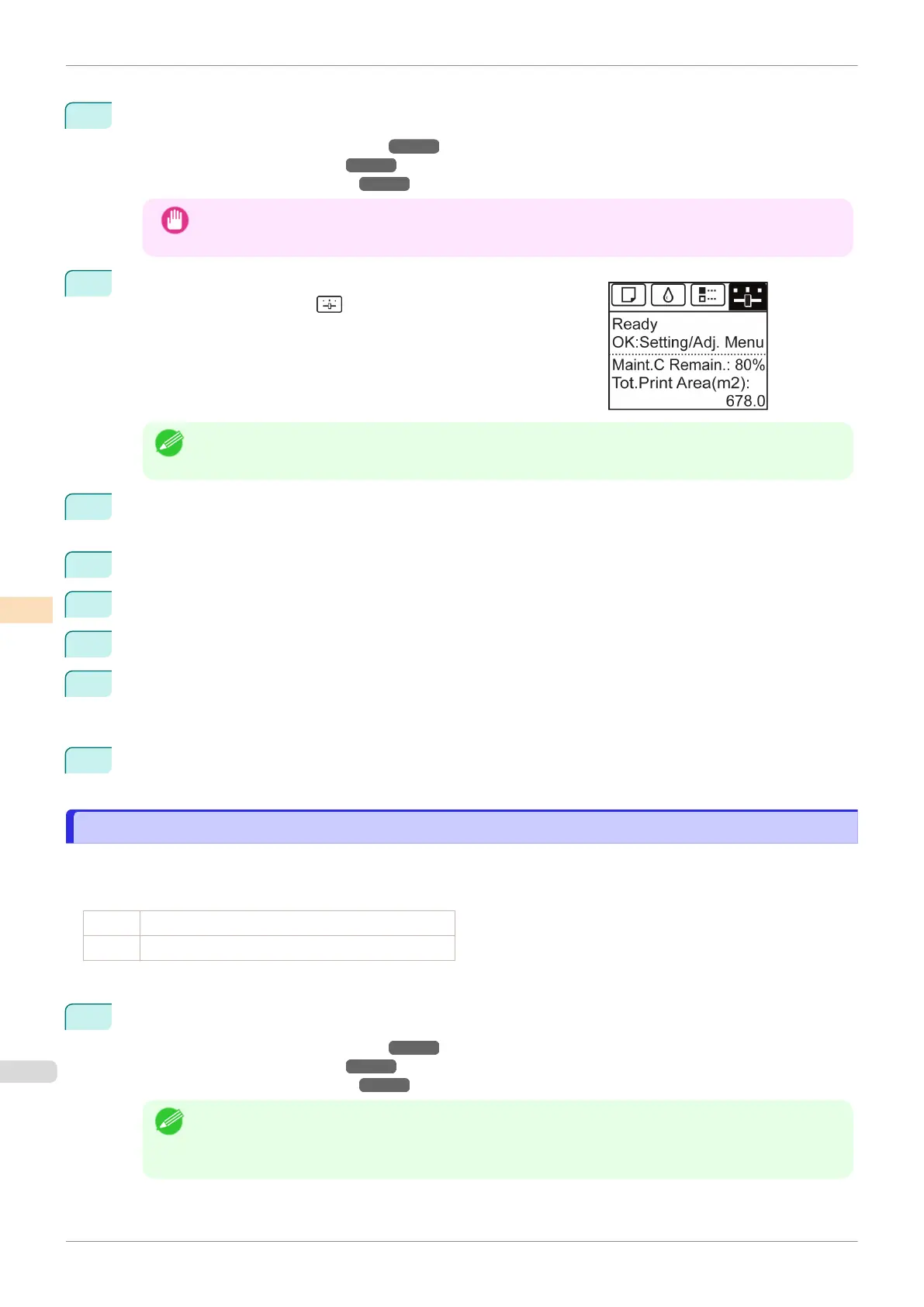 If printed lines are misaligned, execute Head Inc. Adj. to adjust the angle of inclination of the Printhead. Executing