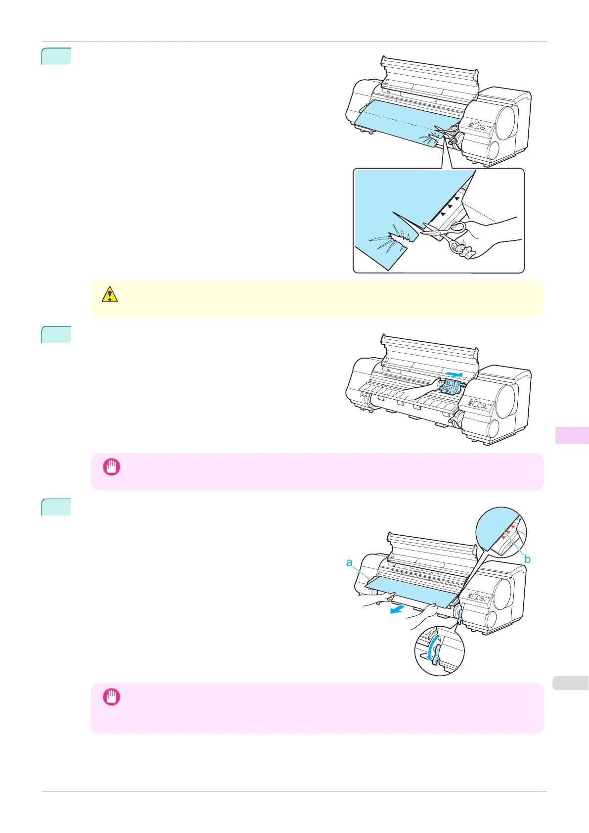 Do not force the roll paper into alignment with the Paper Alignment Line (b). This may prevent the paper