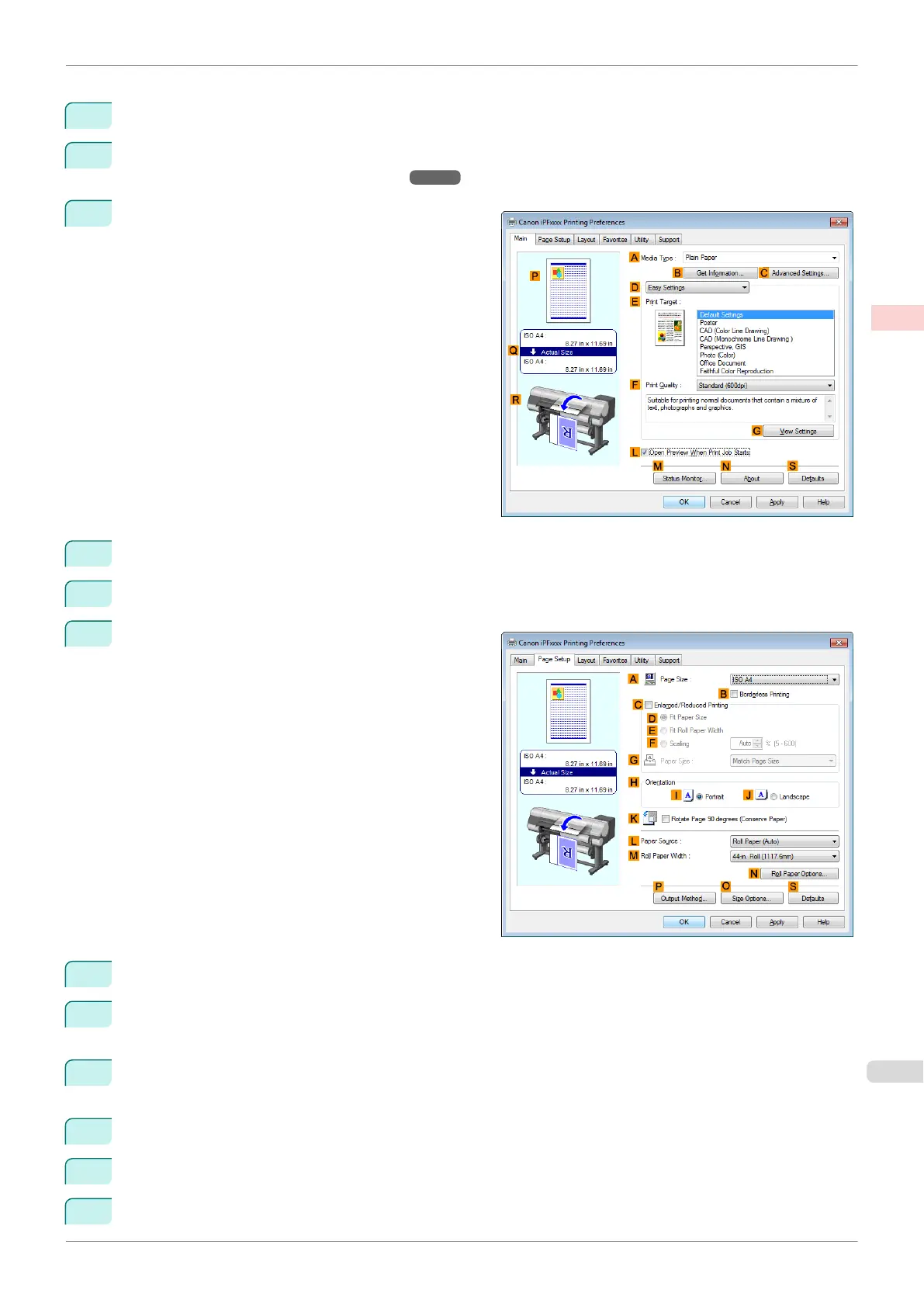 Select the printer in the dialog box, and then open the printer driver dialog box. (See "Accessing the Print-