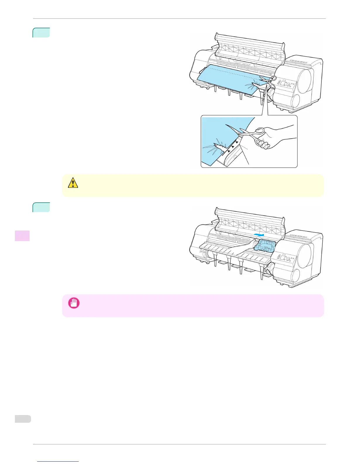 • When cutting paper, be careful to avoid injury or damage to the printer.