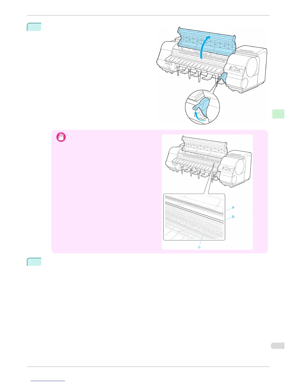 With a sheet lengthwise and printing-side up, insert it between the Platen (a) and the Paper Retainer (b).