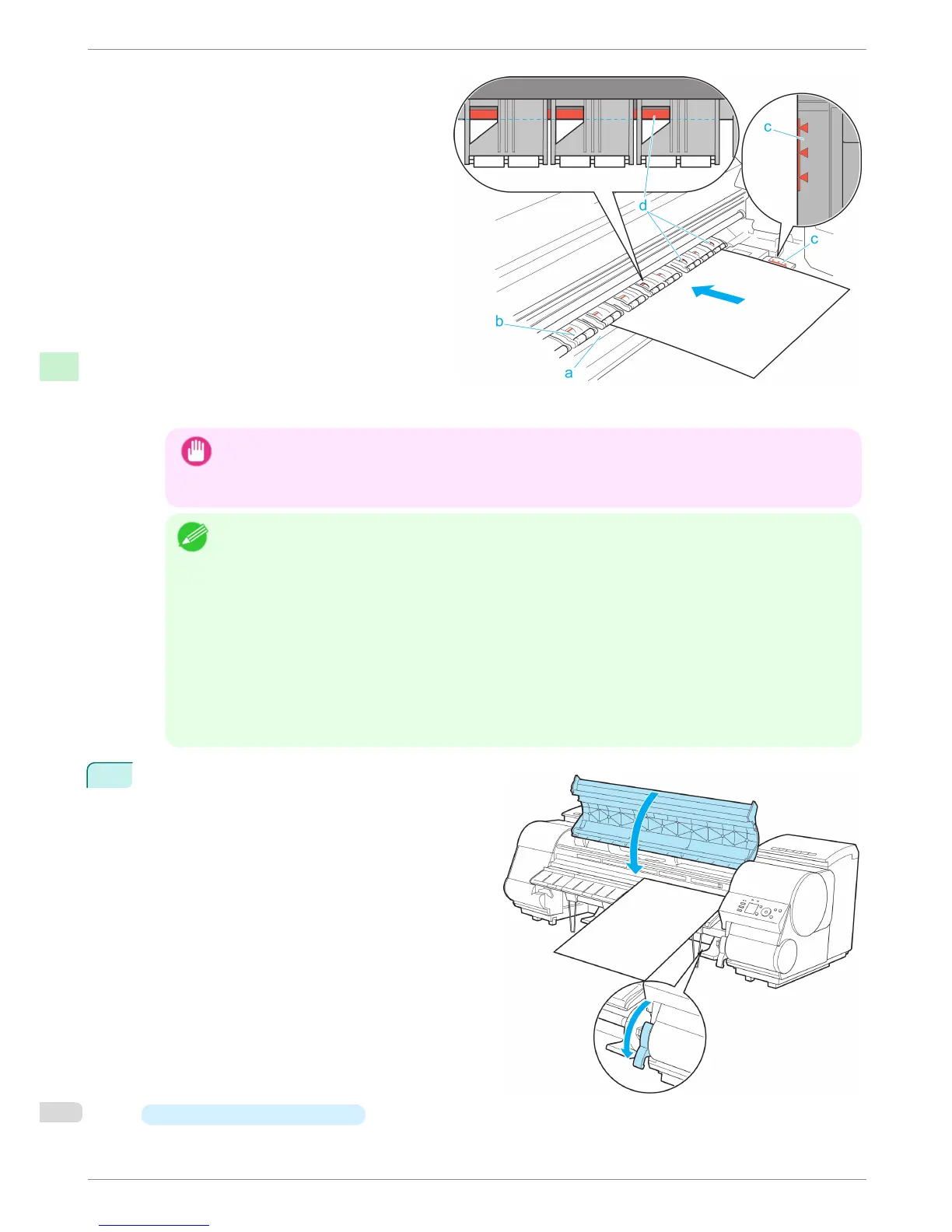 • Load a sheet so that it is parallel to the Paper Alignment Line at right (c). Loading paper askew will cause an