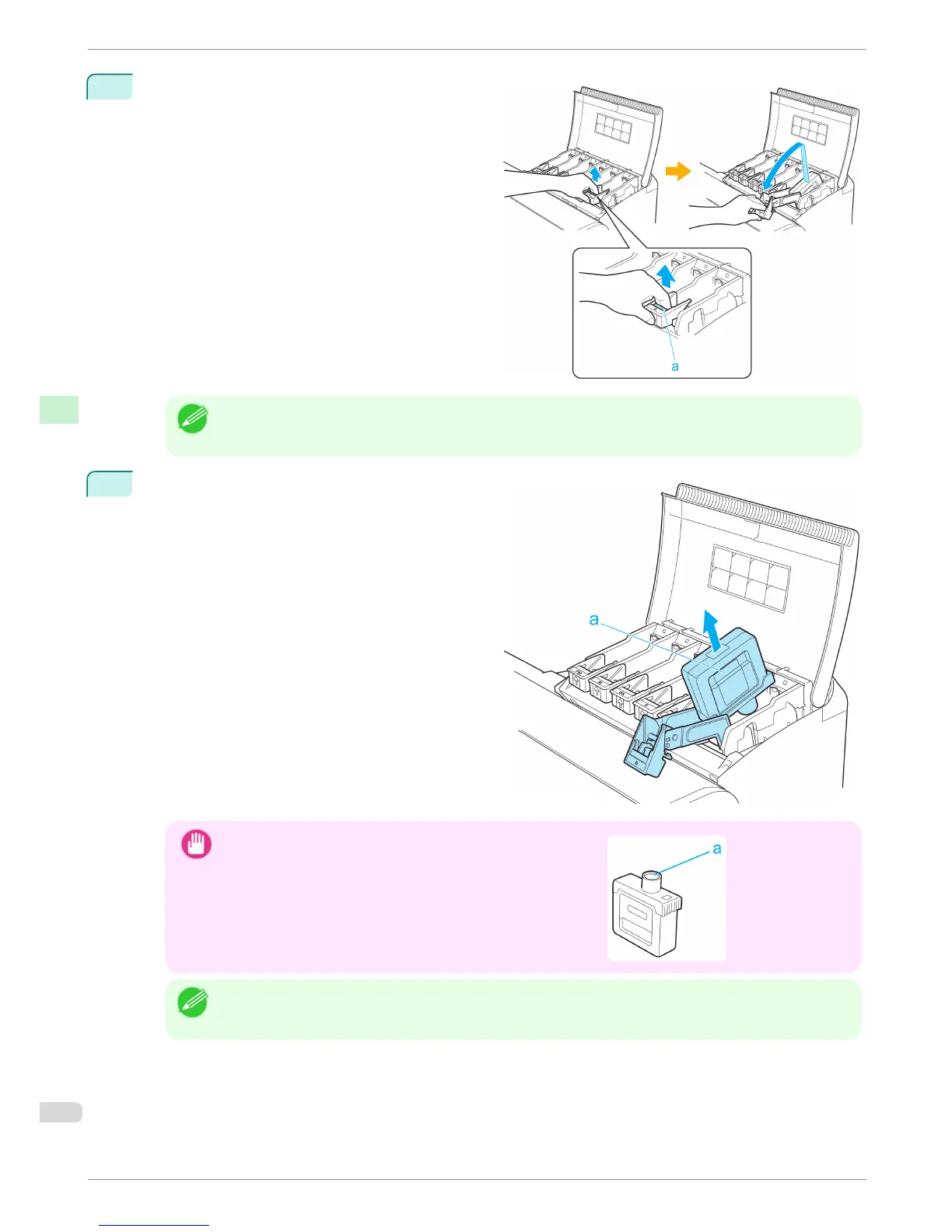 Lift the stopper (a) of the Ink Tank Lock Lever for