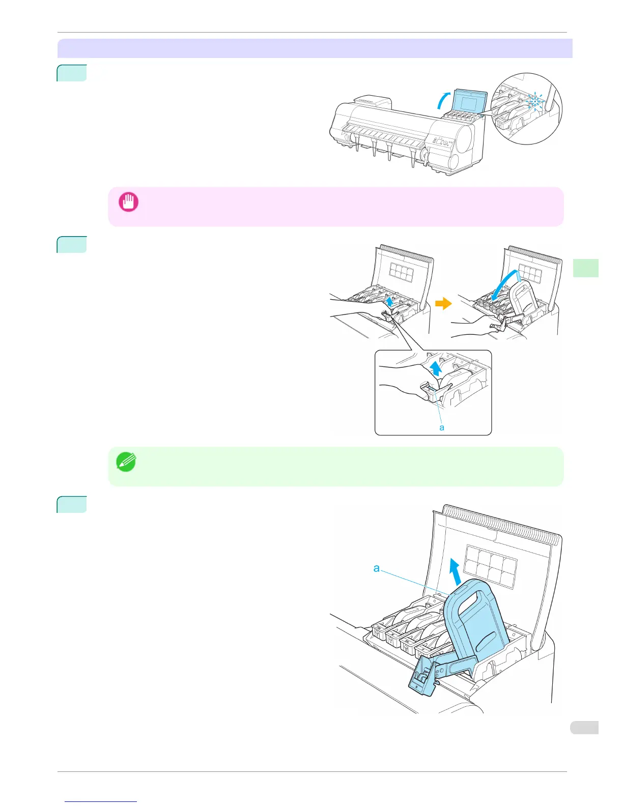 • Avoid hitting the printer when replacing an Ink Tank. Handle the printer gently when replacing tanks. Jolting