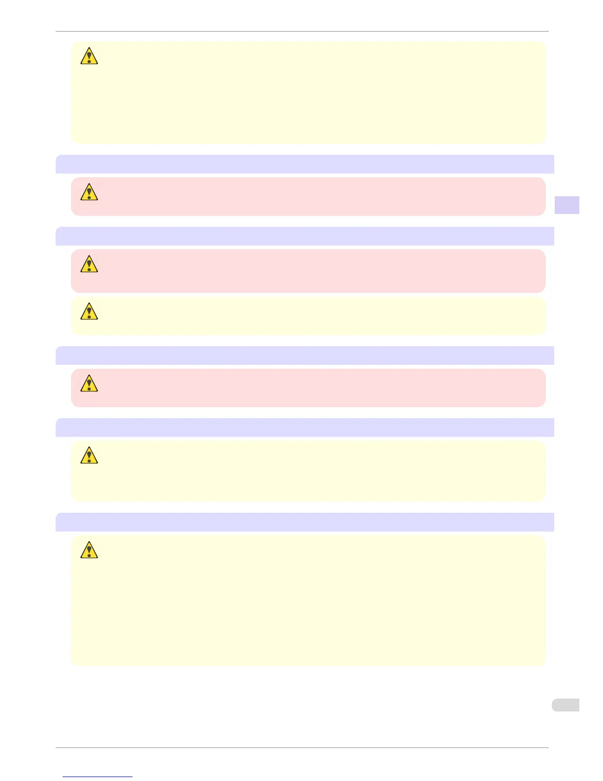 • If the printer emits smoke or strange odors, continuing to use the printer may cause a fire or electrical shock. Switch the