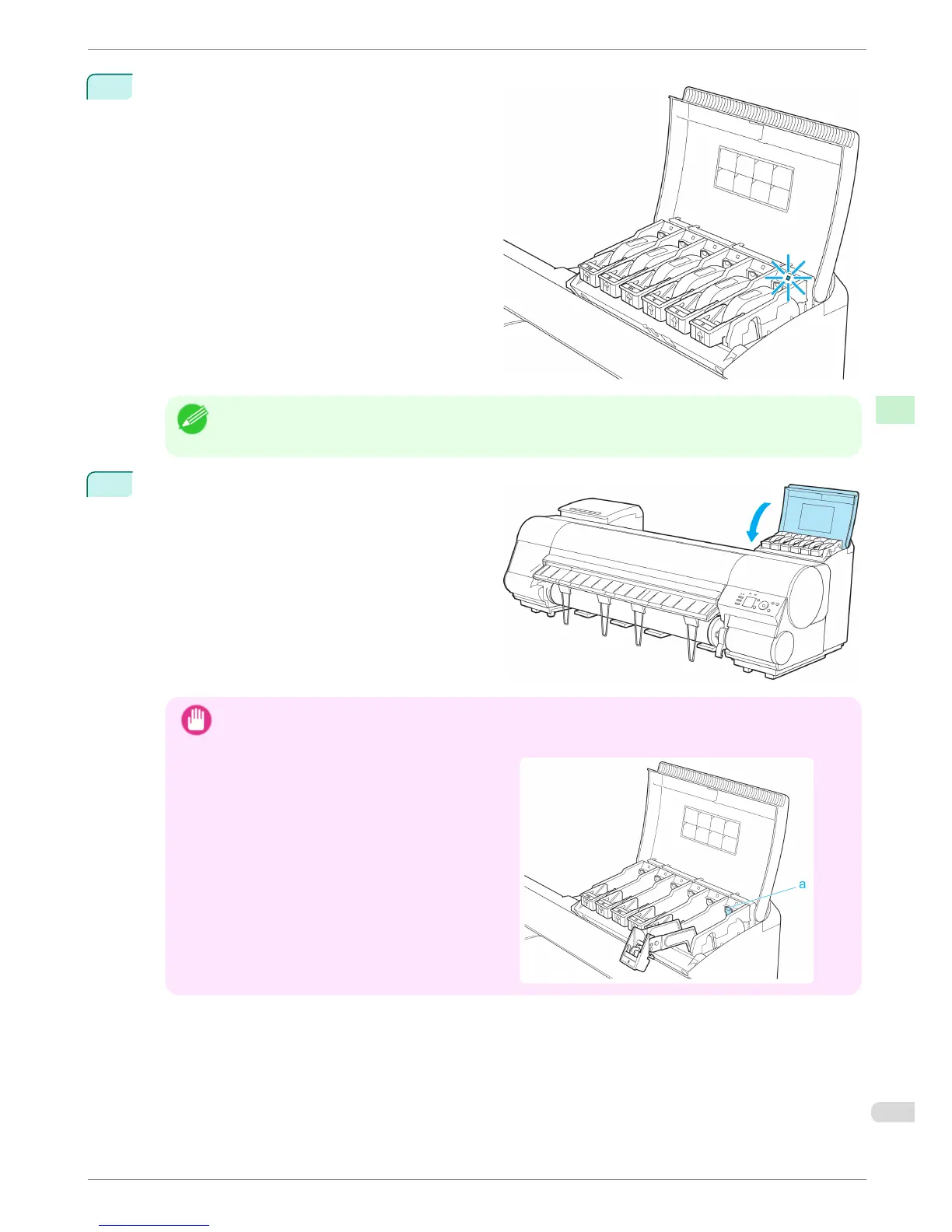 • After Ink Tank replacement, always close the Ink Tank Cover. If the Ink Tank Cover cannot close, some Ink